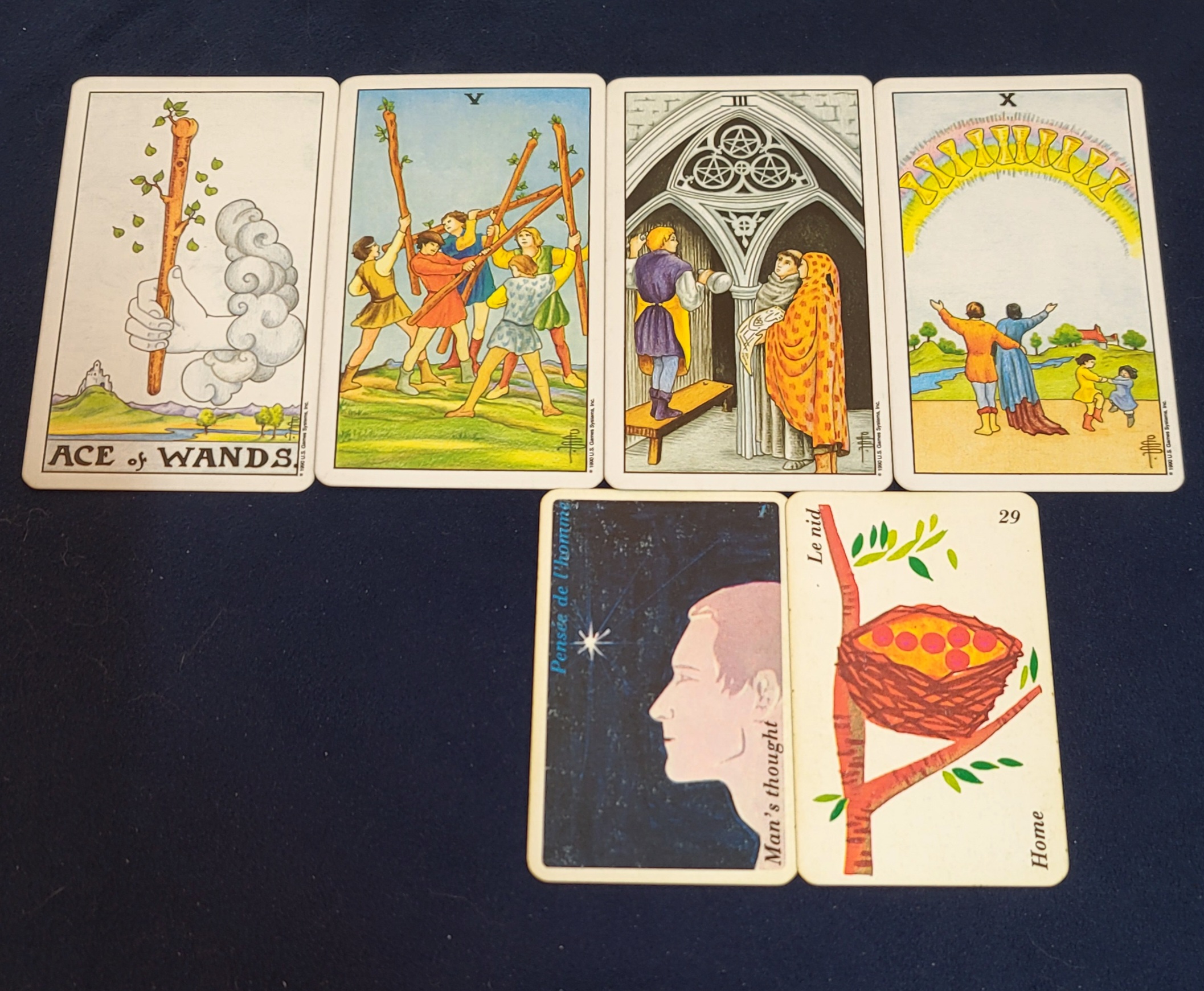 우선 첫카드가 하늘위에 구름에서 손이 나와서 큰 나무를 잡는 카드가 나와 있거든요. 나무는 일을 뜻하고 하늘에서 손이 나와 나무를 잡는거는 나에게 일을 할 기회가 있다라고 볼수가 있는데요. 그 다음 카드를 보면 여러사람이 나무를 들고 제 각각 다투고 좀 불편한 상황인데 에이스 완드카드와 완드5번 카드가 나온거를 볼때 아무래도 새로운거를 하기위해 나름 정리도 필요하다고 볼수가 있겠는데 그 일이 나혼자서 해결 될 일은 아닌 모습으로 나오는데 그 다음카드를 보면 펜타클 3번카드가 나온거를 보면 나를 도와줄 협력자가 있을실것 같애요